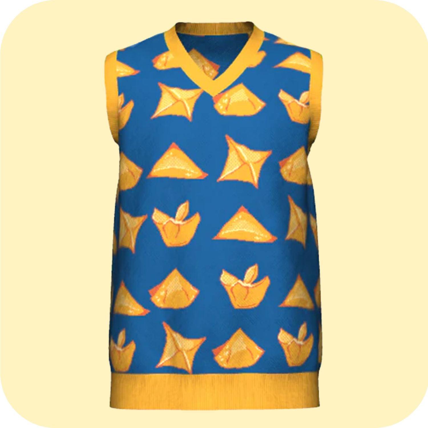 Unique Design: Our knit vests boast a design as unique as your crab rangoon obsession. Featuring intricate folding patterns reminiscent of the beloved appetizer, each piece is a work of art.